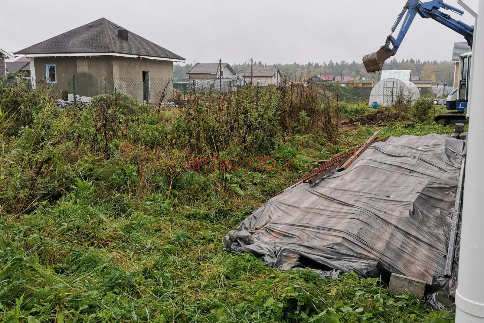 2022-10-04 Подравнивание заросшего дачного участка в деревне Трудовик, Ломоносовский район Ленинградской области. Расчистка от