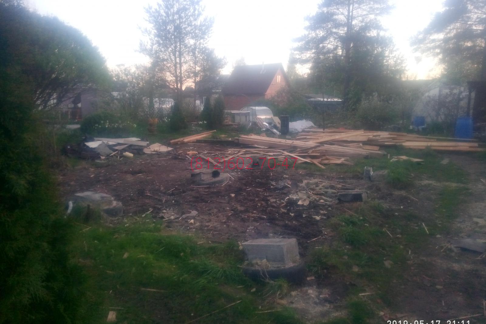 2019-04-12 Снесли щитовой дачный домик в садоводстве Кировец-2, под Гатчиной, с вывозом мусора на полигон.