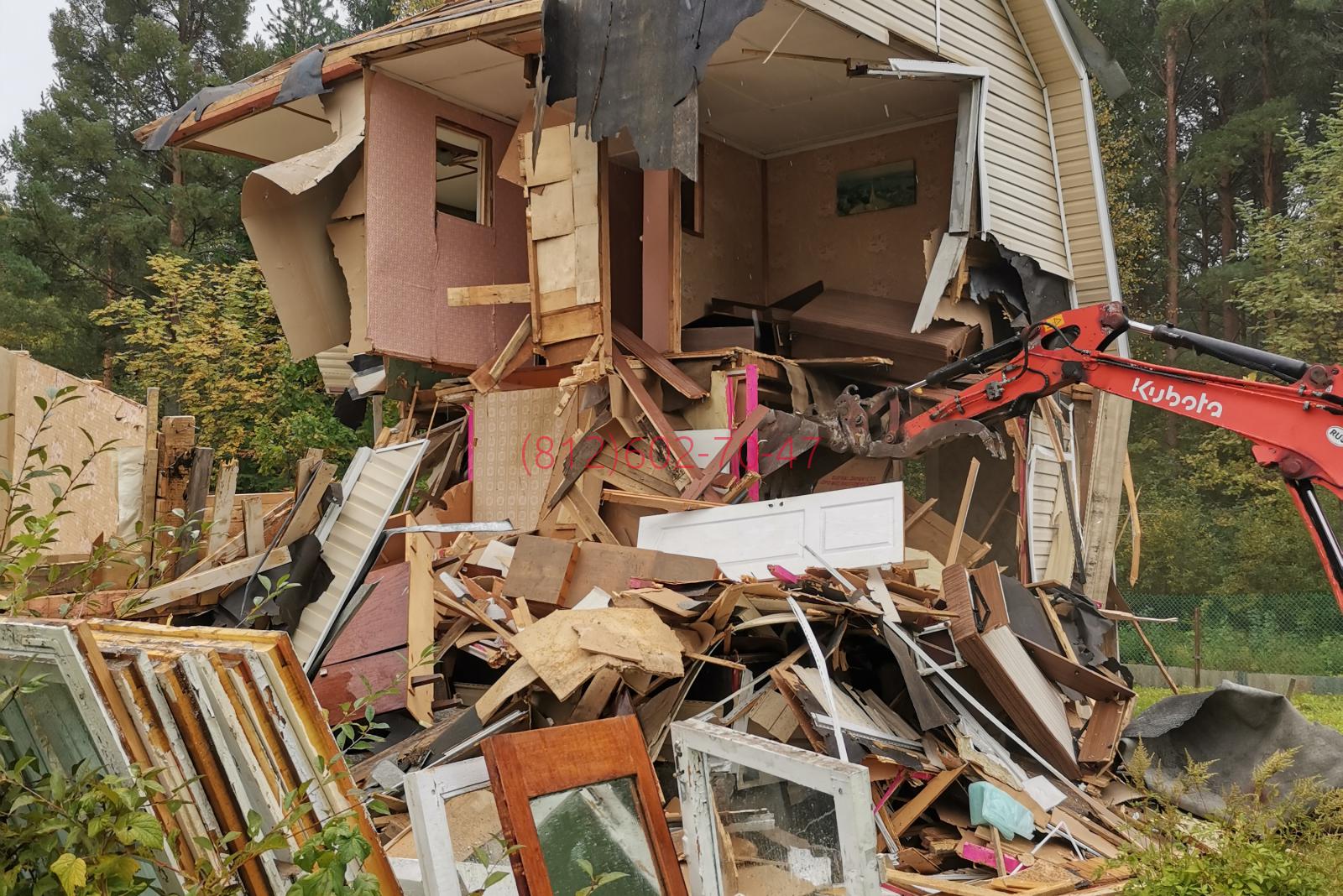 2022-09-15 Снос каркасно-щитового дома с ленточным фундаментом в поселке Горы, Кировский район Ленинградской области.